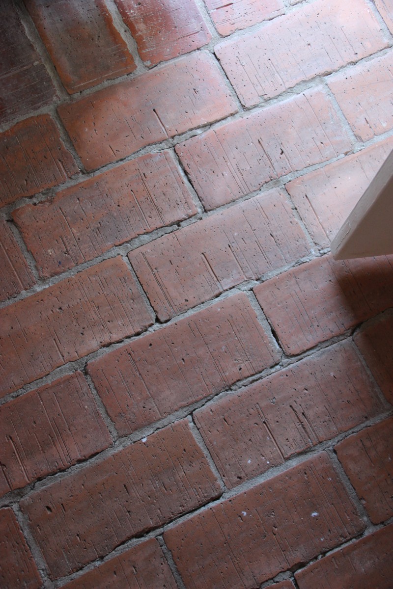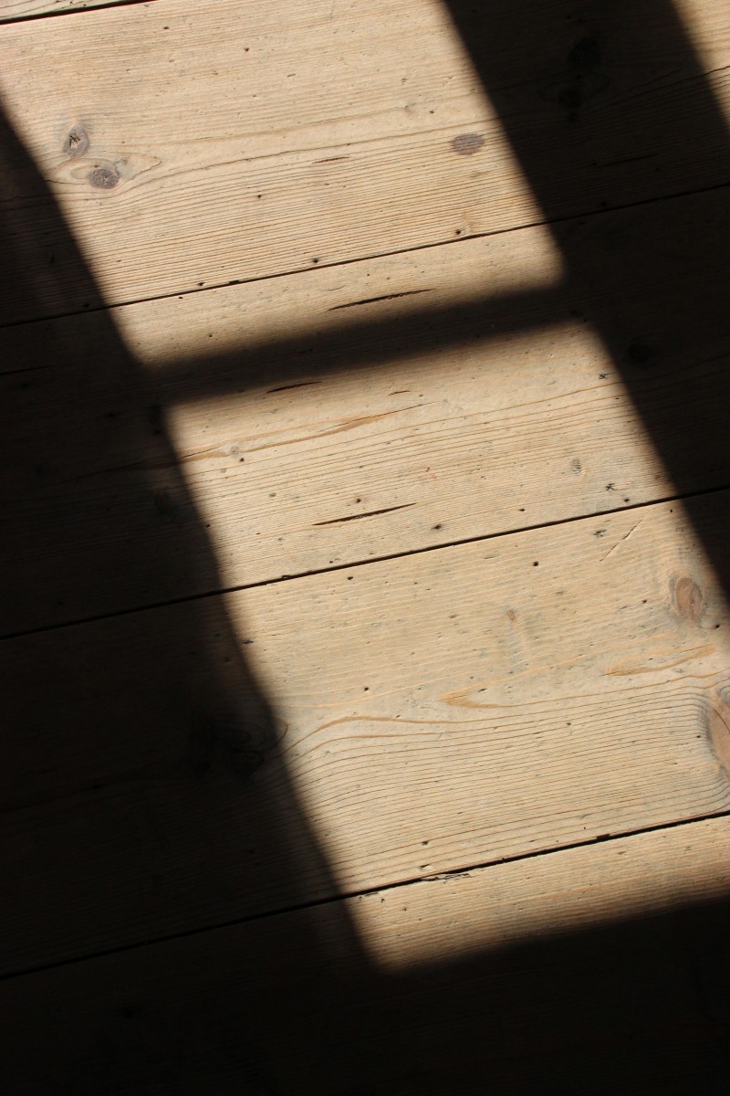 Originalgolv finns bevarat i samtliga rum utom boden som har betongplattor och WC:n som är klinkerlagd.