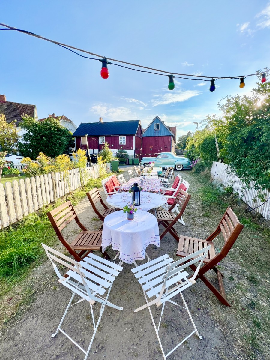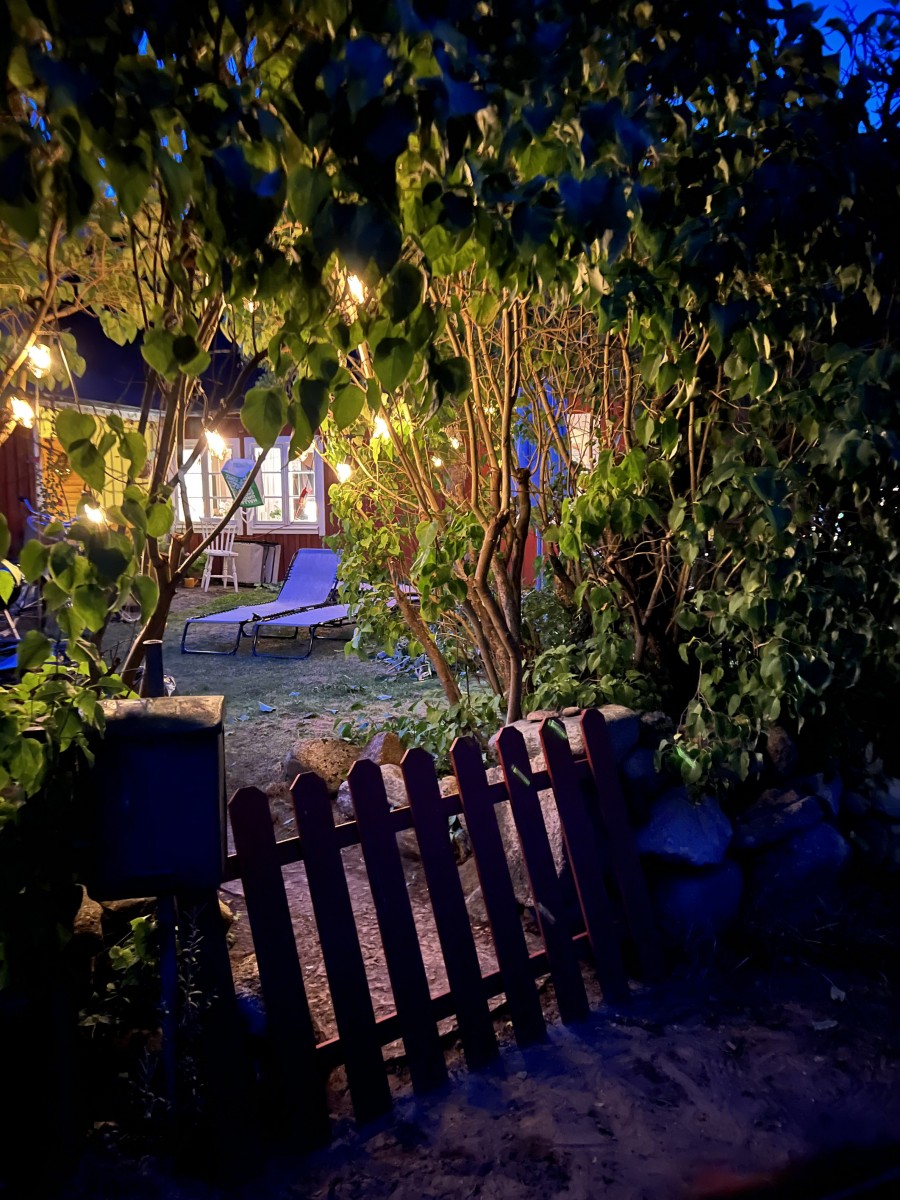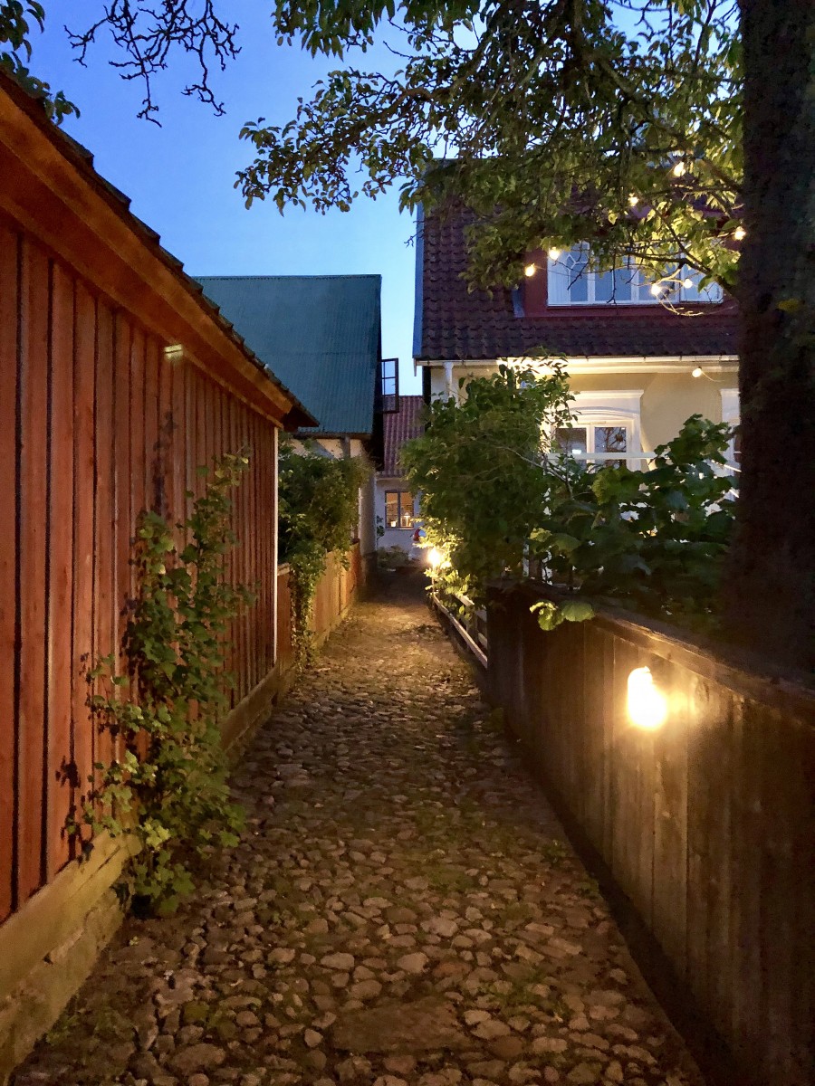 ”Varje kväll vid skymningen tar vi en långpromenad. Vi börjar vid piren där solen sakta sjunker ner i havet och himlen färgas röd. Sedan fortsätter vi genom gränden vid Kivikstrands Badhotell, uppför Moriabacken och hem via slingrande gränder och kullerstensgator. På vägen hem hör man ljudet från små trädgårdsfester som anas bakom plank och blomster. Och nästan varje kväll räknar vi igelkottar som tassar framför våra fötter. Det har blivit vår lilla tradition. Varje hus vi passerar känns som ett litet konstverk, och man tröttnar aldrig på utsikten, dofterna eller stämningen.” Säljaren
